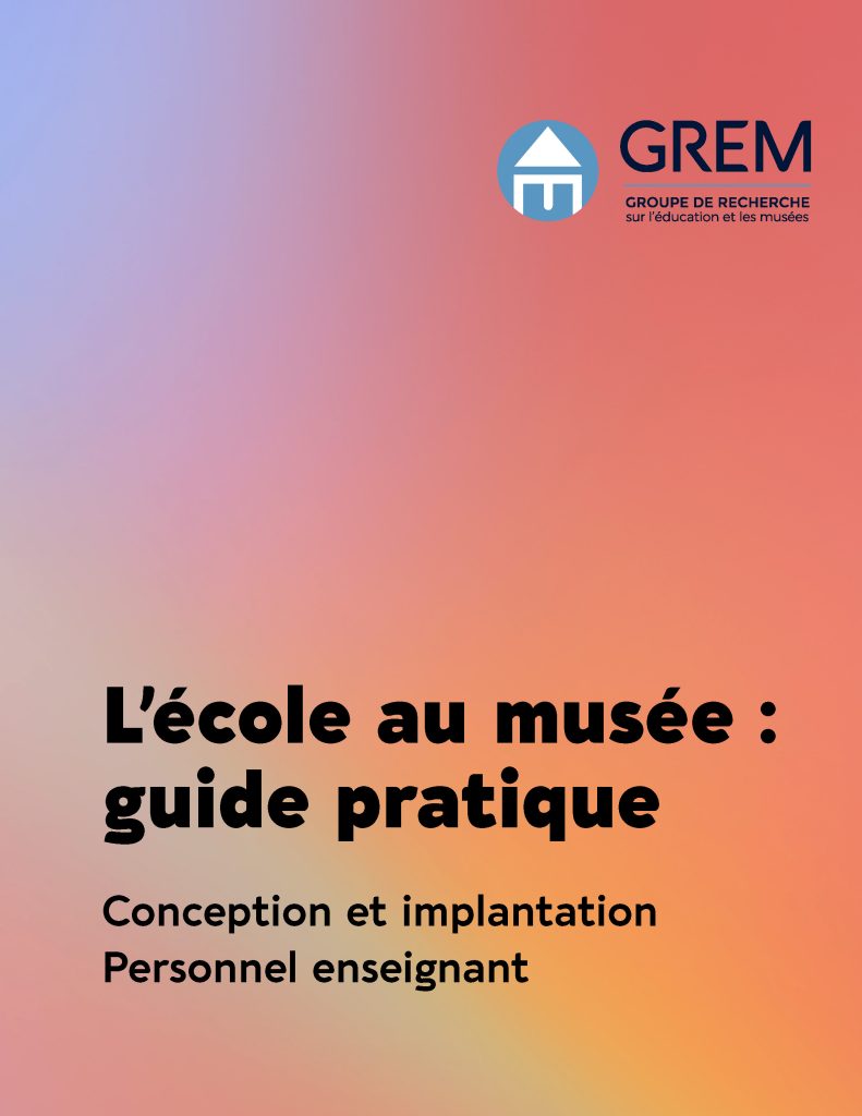 Le chapitre 9 du livre présente L’école au musée qui propose aux enseignant·es de concevoir et mettre en oeuvre un projet musée-école en collaboration avec les musées à proximité de l’école. Après plusieurs années où l’équipe du GREM a soutenu les équipes des écoles et des musées, il est apparu nécessaire de rédiger un guide partageant ainsi les étapes, points de vigilances et astuces pour le bon déroulement et le succès du projet à l’attention des enseignant·es. La version du guide adaptée aux équipes des musées sera produite en 2026.
